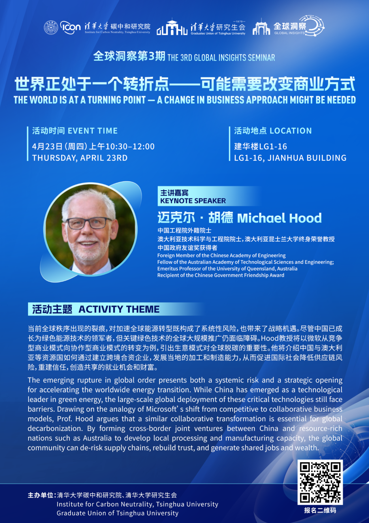 The 3rd Global Insights event focuses on the topics of global energy transition and the coordinated development of green industries. We are honored to have Foreign Member of the Chinese Academy of Engineering, Michael Hood as our guest speaker.