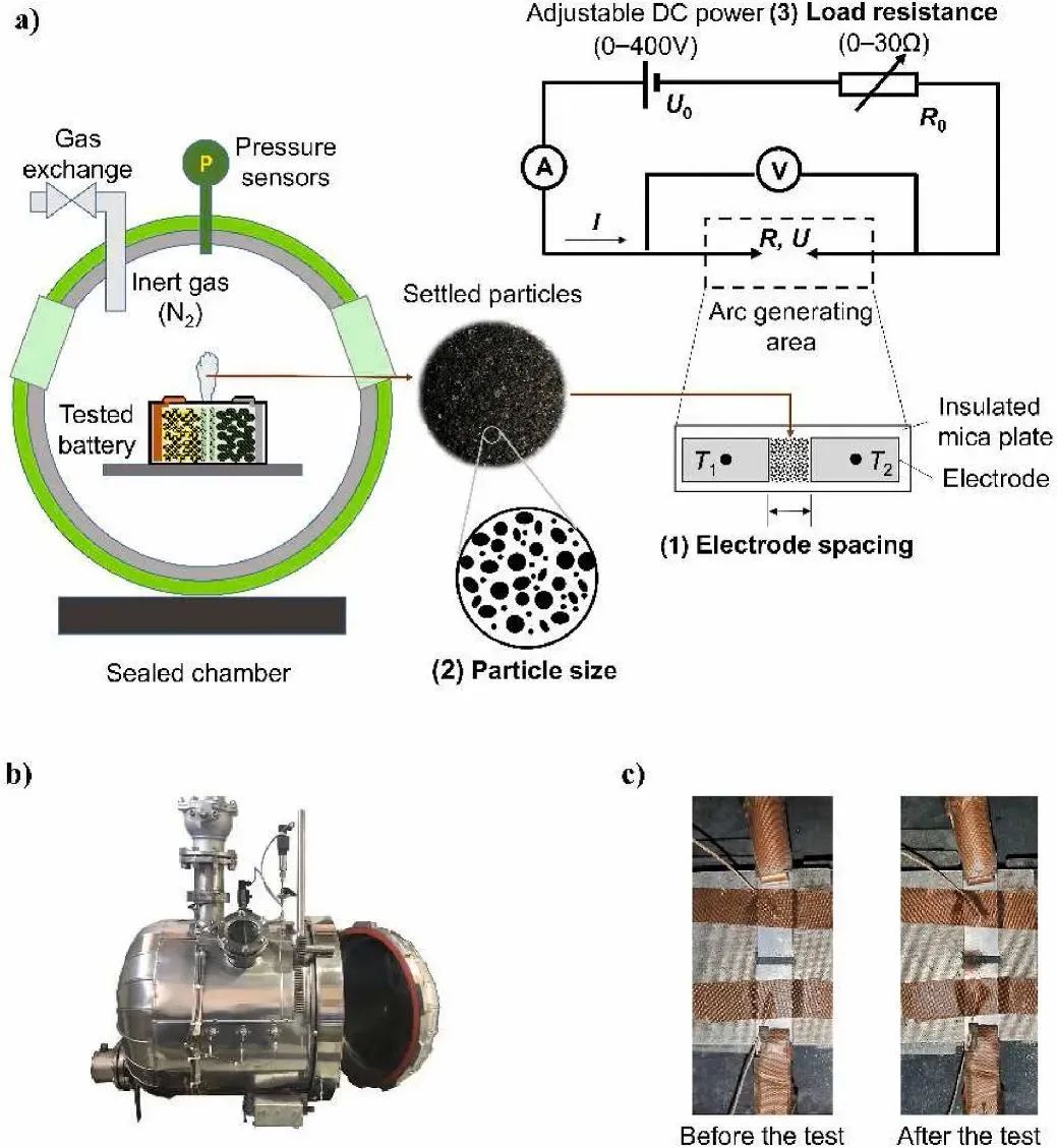 锂离子电池热失控喷发过程是引发新能源汽车起火事故和电气故障的关键环节,当大量高温、高速的喷发颗粒物释放到电池系统中,电弧故障问题可能随之发生,但其致灾边界与机制尚不清晰。