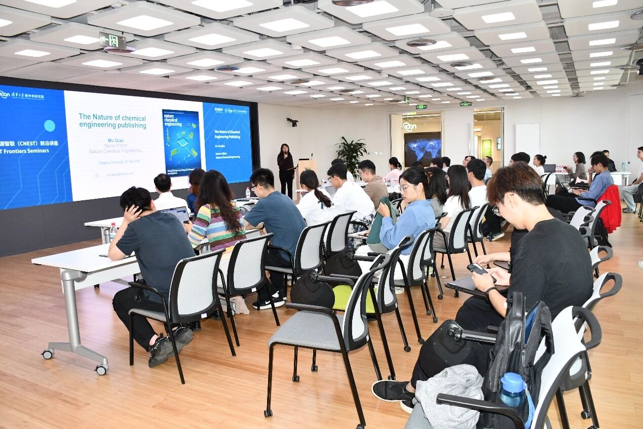 9月25日,碳中和与能源智联(CNEST)前沿讲座第8期在清华大学碳中和研究院成功举办。本次活动邀请到Nature Chemical Engineering资深编辑Mo Qiao博士带来题为 “The Nature of Chemical Engineering Publishing” 的精彩演讲,并与现场师生展开热烈交流。清华大学碳中和研究院副院长关大博教授主持讲座。