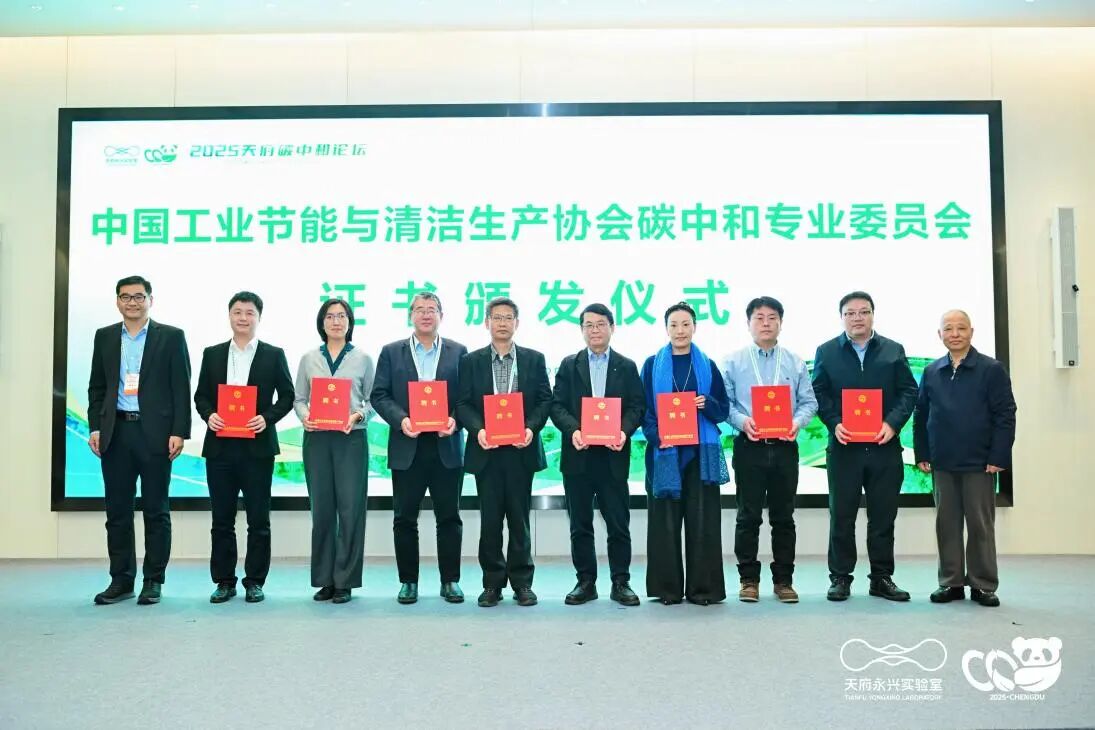 论坛期间,“中国工业节能与清洁生产协会碳中和专业委员会”正式揭牌成立。专委会将聚焦政策研究、技术评估、标准制定、产业协同等领域,推动工业绿色低碳转型与产业链协同创新。首批会员单位包括东方电气集团工程设计有限公司、山西航天工业研究院集团公司、天府永兴实验室、伊顿电源(上海)有限公司、天合富家能源股份、台达电子集团、通威集团、四川省工业环境监测研究院等多家机构。