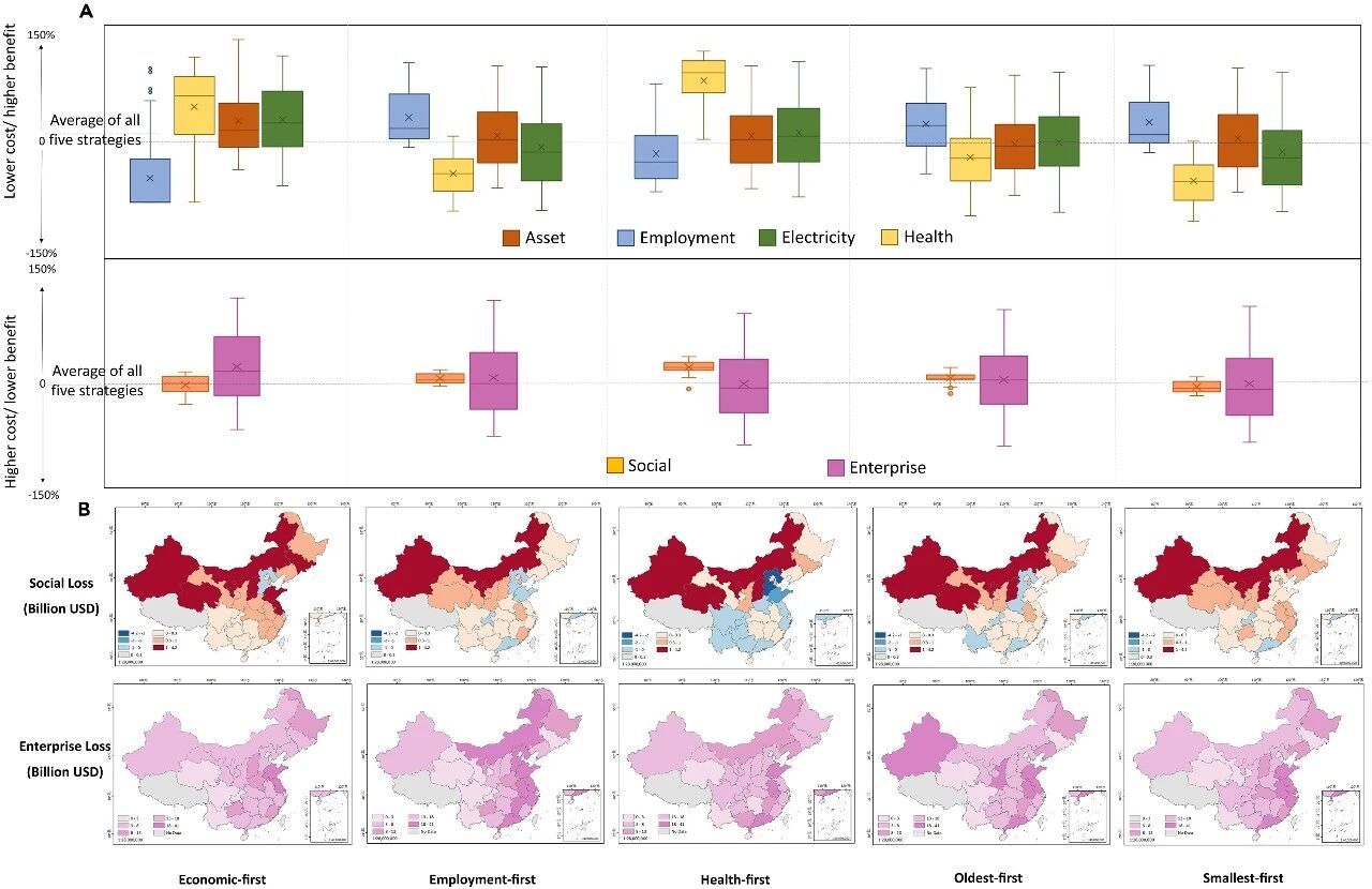 清华大学碳中和研究院减污降碳协同增效研究中心、清华大学地学系蔡闻佳团队在Cell Press细胞出版社交叉学科期刊Nexus发表题为 “Multidimensional inequality embedded in the gains and losses from China’s coal phasedown” 的封面研究文章。该研究聚焦中国2060年碳中和目标下的煤炭退出转型,构建了基于电厂层面的结果导向框架,系统评估了五种退出策略在资产搁浅损失、利润损失、就业损失和健康收益四大维度的分布影响。研究发现健康优先策略的社会净效益最高,比平均水平高出24%,同时揭示了煤炭退出可能加剧区域不平等的风险,为制定兼顾气候目标与社会公平的公正转型政策提供了关键参考。