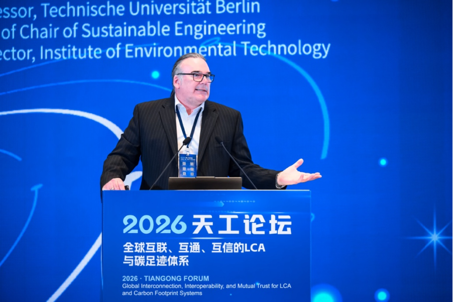 为支持国家碳足迹管理体系的建设、促进全球LCA和碳足迹领域的创新和应用,清华大学牵头发起“天工计划”,秉持开放开源、协同共创的精神,定期举办“天工论坛”,推动全球数据、方法、工具、应用的互联、互通和互信。2026·天工论坛以“全球互联、互通、互信的LCA与碳足迹体系”为主题,设置主论坛、LCA开发者大会、全球LCA平台研讨会、及行业分论坛,吸引来自联合国、世界可持续发展工商理事会等国际组织以及美国、德国、法国、巴西、印度、秘鲁等十多个国家的政府、企业、行业和学术界代表参会,参会单位近百家、参会人数500余人。